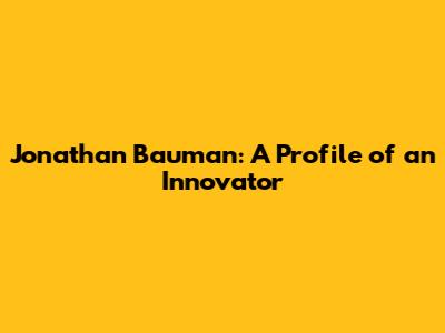 Jonathan Bauman: A Profile Of An Innovator