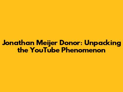 Jonathan Meijer Donor: What You Need To Know