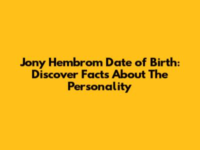 Before we get to the specifics of Jony Hembrom date of birth, it’s important to understand who Jony Hembrom is. Knowing about their background and accomplishments can provide context and make the details even more interesting.