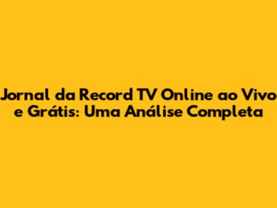 Como Assistir ao Jornal da Record TV Online de Graça?
