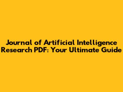 Journal Of AI Research PDF: Your Ultimate Guide