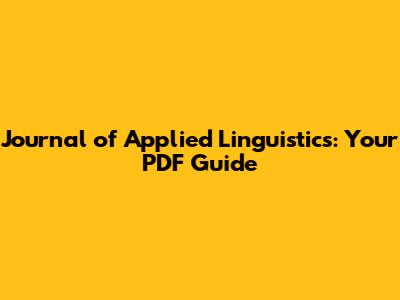 Journal Of Applied Linguistics: Your PDF Guide