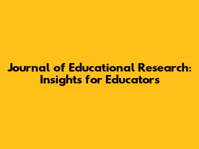 Journal Of Educational Research: Insights For Educators
