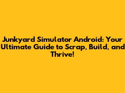 Junkyard Simulator Android: Scrap, Build, And Thrive!