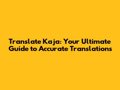 Kaja Translation: Your Ultimate Guide