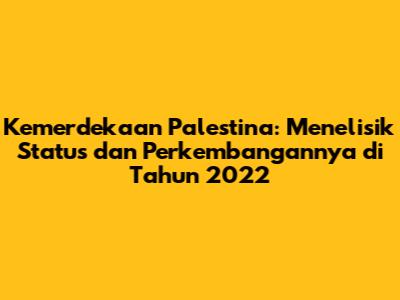 Kemerdekaan Palestina pada tahun 2022 masih merupakan tujuan yang belum sepenuhnya tercapai. Meskipun terdapat pengakuan internasional dan upaya diplomatik, tantangan seperti pendudukan Israel, perpecahan internal, dan dukungan internasional yang terpecah menghambat kemajuan. Namun, semangat juang rakyat Palestina dan dukungan dari masyarakat internasional tetap menjadi harapan bagi masa depan yang lebih baik. Dengan upaya berkelanjutan dan negosiasi yang adil, kemerdekaan Palestina tetap menjadi tujuan yang mungkin dicapai. So, guys, mari kita terus mengikuti perkembangan isu ini dan berharap yang terbaik untuk rakyat Palestina.
