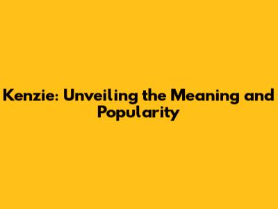 Kenzie: Unveiling The Meaning And Popularity