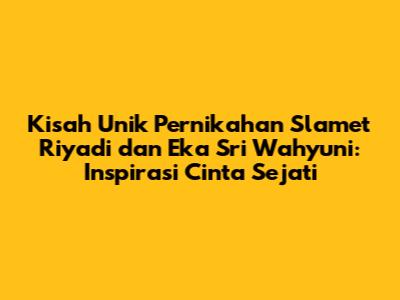 Guys, pernah gak sih kalian denger cerita cinta yang bener-bener bikin melting dan sekaligus bikin penasaran? Nah, kisah pernikahan Slamet Riyadi dan Eka Sri Wahyuni ini adalah salah satunya! Cerita mereka viral banget, bahkan sampai sekarang masih banyak yang penasaran gimana sih kisah cinta mereka yang sebegitu uniknya. Yuk, kita kupas tuntas perjalanan cinta Slamet dan Eka, mulai dari awal pertemuan hingga akhirnya mereka memutuskan untuk menikah. Dijamin, kisah mereka ini bakal bikin kalian percaya kalau cinta itu memang bisa datang dari mana saja dan dalam kondisi apapun.