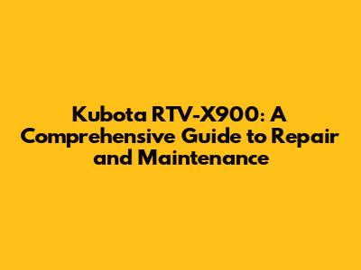 Kubota RTV-X900: Ultimate Guide To Repair & Maintenance