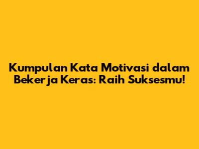 Kata motivasi dalam bekerja keras adalah kunci untuk membuka potensi diri dan meraih kesuksesan. Ingatlah bahwa perjalanan menuju kesuksesan tidak selalu mudah, tetapi dengan semangat yang membara dan motivasi yang kuat, kamu pasti bisa mencapainya. Jangan pernah menyerah pada impianmu. Teruslah berusaha, belajar dari kegagalan, dan percayalah pada kemampuanmu. Jadikan kata motivasi dalam bekerja keras sebagai teman setia dalam perjalanan karirmu. Dengan semangat yang tak kenal lelah, kamu akan mampu mencapai puncak kesuksesan yang kamu impikan. Semangat terus, guys! Raih impianmu!