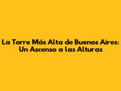 La Torre Más Alta De Buenos Aires: Un Ascenso A Las Alturas