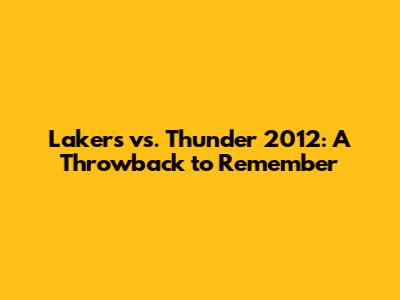 Lakers Vs. Thunder 2012: A Throwback To Remember