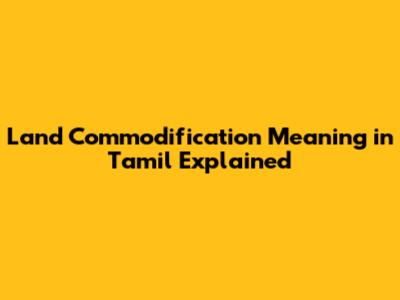 Land Commodification Meaning In Tamil Explained