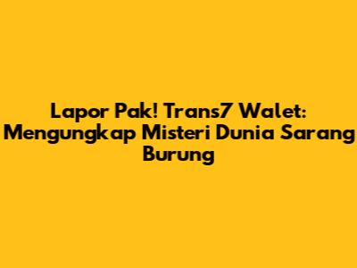 Lapor Pak! Trans7 Walet merupakan sebuah program investigasi yang tayang di stasiun televisi Trans7. Program ini terkenal karena keberaniannya dalam mengungkap berbagai kasus, termasuk yang berkaitan dengan dunia bisnis sarang burung walet. Bagi kalian yang penasaran dengan seluk-beluk Trans7 Walet, artikel ini akan membahas secara mendalam berbagai aspek terkait, mulai dari investigasi yang dilakukan, isu-isu yang diangkat, hingga dampak terhadap masyarakat dan industri.