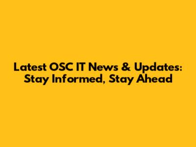 Latest OSC IT News & Updates