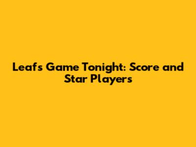 Leafs Game Tonight: Score And Star Players