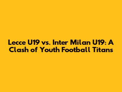 Hey guys, get ready for a deep dive into a thrilling matchup in youth football! We're talking about the clash between Lecce U19 and Inter Milan U19. This isn't just any game; it's a battleground where future stars are forged, tactics are tested, and the passion for the beautiful game burns bright. We'll break down everything you need to know, from team analysis and predicted lineups to where you can catch all the action. So, buckle up, football fanatics, as we explore this exciting encounter!