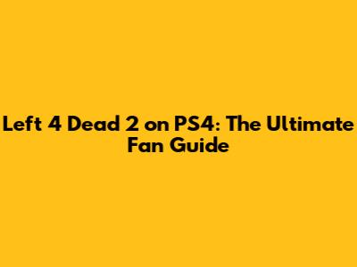 Left 4 Dead 2 On PS4: The Ultimate Fan Guide