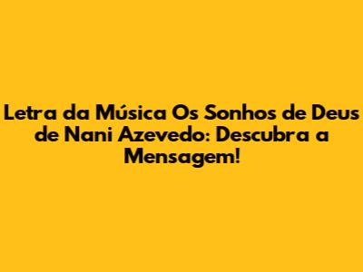Letra 'Os Sonhos De Deus' Nani Azevedo: Descubra A Mensagem!