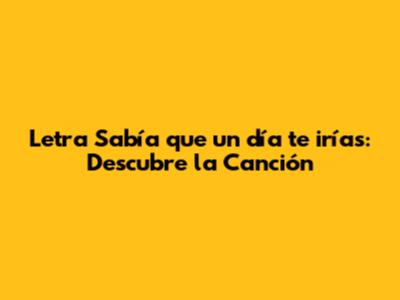 Letra Sabía Que Un Día Te Irías: Descubre La Canción