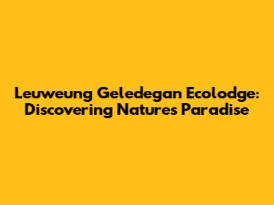 Leuweung Geledegan Ecolodge: Your Gateway To Nature's Embrace