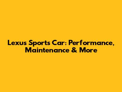 Lexus Sports Car: Performance, Maintenance & More