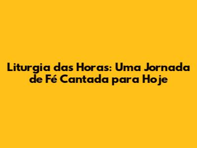 Liturgia Das Horas: Canto E Oração Para Hoje