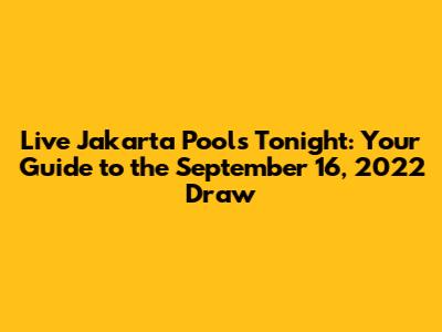 Live Jakarta Pools: Tonight's Draw - September 16, 2022