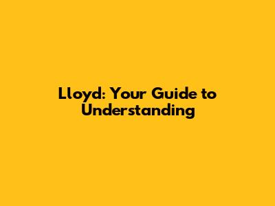 Lloyd: Your Guide To Understanding