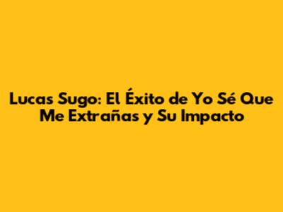 "Yo Sé Que Me Extrañas" no solo fue un éxito comercial; también tuvo un impacto significativo en la carrera de Lucas Sugo. La canción lo catapultó a la fama internacional, abriéndole puertas a nuevos mercados y oportunidades. Después del éxito de la canción, Sugo comenzó a recibir más atención de los medios de comunicación, lo que le permitió ampliar su base de fans y llegar a un público más amplio. La canción también le valió varios premios y reconocimientos, consolidando su posición como uno de los artistas más importantes de la música latina contemporánea.
