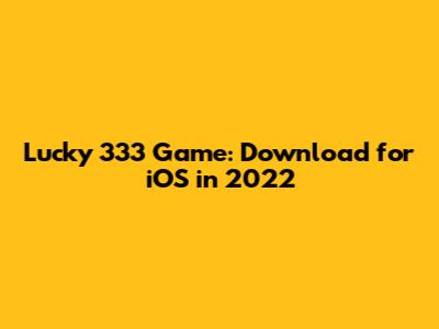 Lucky 333 Game: Download For IOS In 2022