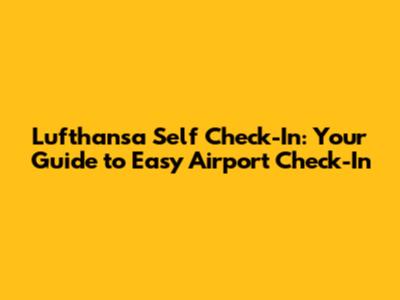 Lufthansa Self Check-In: Your Guide To Easy Airport Check-In
