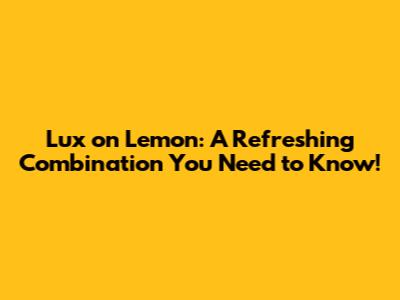Lux And Lemon: A Refreshing Combination You Need To Know!