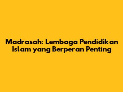 Madrasah adalah lembaga pendidikan yang memiliki peran penting dalam sistem pendidikan Islam di Indonesia. Peran madrasah dalam sejarah sangat signifikan, sebagai pusat penyebaran ajaran Islam, pembentukan karakter, dan pengembangan intelektual umat Islam. Jenis-jenis madrasah beragam, mulai dari MI hingga MA, dengan kurikulum yang disesuaikan dengan jenjang pendidikan. Madrasah membentuk karakter Islami pada siswa melalui pendidikan karakter yang terintegrasi dalam seluruh aspek pembelajaran. Tantangan madrasah di masa depan cukup kompleks, namun harapan untuk madrasah sangat besar. Dengan peningkatan kualitas pendidikan, peningkatan kerjasama, dan inovasi dalam metode pembelajaran, madrasah diharapkan dapat terus berkembang dan memberikan kontribusi yang besar bagi kemajuan bangsa dan negara.