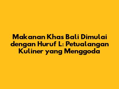 Itulah beberapa makanan khas Bali yang namanya dimulai dengan huruf 'L'. Setiap hidangan memiliki keunikan dan kelezatannya masing-masing. Jadi, jangan ragu untuk mencoba semuanya saat Anda berada di Bali. Selamat menikmati petualangan kuliner Anda di pulau dewata!