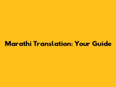 Marathi Translation: Your Guide