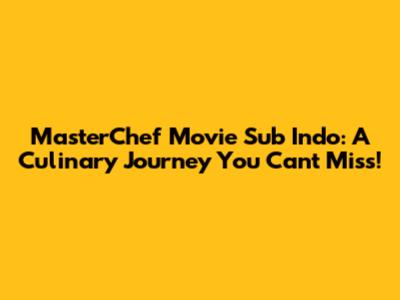 MasterChef Movie Sub Indo: A Culinary Journey You Can't Miss!
