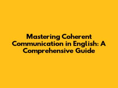 Mastering Coherent Communication In English: A Comprehensive Guide