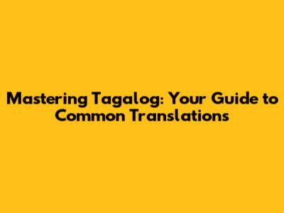 Mastering Tagalog: Your Guide To Common Translations