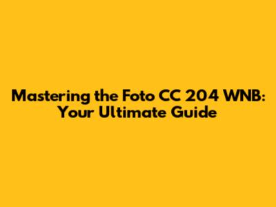 Mastering The Foto CC 204 WNB: Your Ultimate Guide