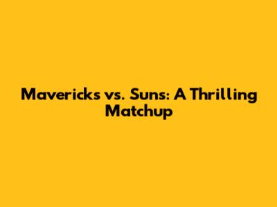 Mavericks Vs. Suns: A Thrilling Matchup
