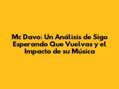 Mc Davo: ¿Sigo Esperando Que Vuelvas? Análisis Profundo