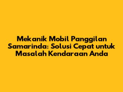 Mekanik Mobil Panggilan Samarinda: Solusi Darurat & Perawatan