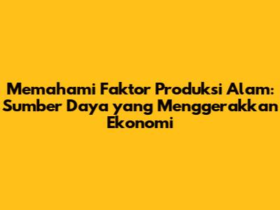 Faktor produksi alam, atau yang sering disebut juga sebagai sumber daya alam, adalah elemen krusial dalam proses produksi. Guys, kalau kita bicara soal bagaimana barang dan jasa dihasilkan, sumber daya alam ini adalah fondasinya. Mulai dari tanah tempat kita bercocok tanam, air yang kita gunakan untuk minum dan irigasi, hingga mineral dan bahan bakar yang menggerakkan industri, semuanya termasuk dalam kategori ini. Tanpa adanya sumber daya alam, kegiatan ekonomi akan sulit berjalan. Artikel ini akan membahas secara mendalam mengenai faktor produksi alam, mulai dari definisi, jenis-jenis, hingga bagaimana peranannya dalam pembangunan ekonomi.