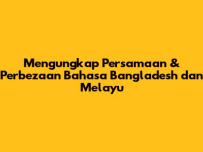 Mengungkap Persamaan & Perbezaan Bahasa Bangladesh Dan Melayu