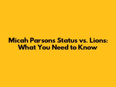 Micah Parsons' Status Vs. Lions: What You Need To Know