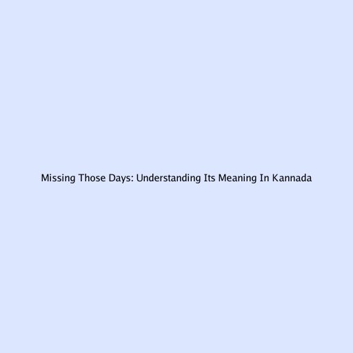 Missing Those Days: Understanding Its Meaning In Kannada