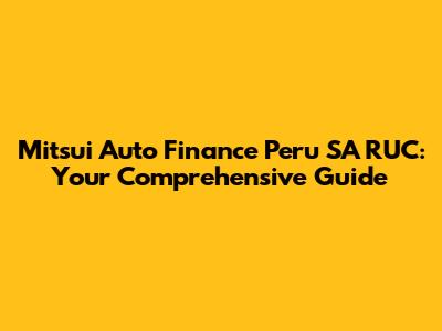 Hey there, finance enthusiasts and anyone curious about Mitsui Auto Finance Peru SA RUC! We're diving deep into this topic, and I'm here to break it down in a way that's easy to understand. Whether you're a seasoned business pro or just starting to learn about Peruvian financial entities, this guide will provide you with the essential information you need. We'll cover everything from what the RUC is to how it relates to Mitsui Auto Finance Peru SA, ensuring you have a solid grasp of the subject. Ready? Let's get started!