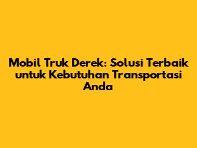 Mobil truk derek adalah solusi transportasi yang sangat penting dalam dunia modern ini, terutama bagi mereka yang membutuhkan pemindahan kendaraan, penanganan kecelakaan, atau pengangkutan barang berat. Dalam artikel ini, kita akan membahas secara mendalam tentang apa itu mobil truk derek, jenis-jenisnya, manfaatnya, dan bagaimana memilih yang tepat untuk kebutuhan Anda. Jadi, siap-siap, guys, kita akan menyelami dunia mobil truk derek!