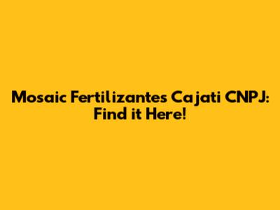 Mosaic Fertilizantes Cajati CNPJ: Find It Here!